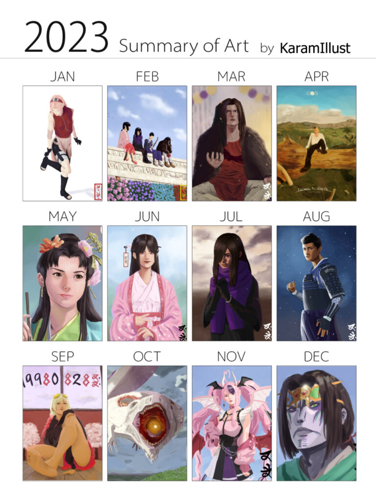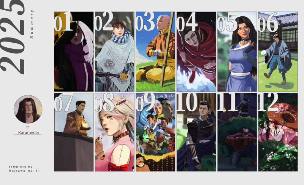 It’s the end of the year so that means creating an art summary. I wanted to upload it here too. Looking back I had a good year. This year, I created a Tumblr account and have been seeing engagement beyond expectations. I have also tried to niche down my genre of art. I stumbled a few opportunities to acquire commissions, so the amount I made was zero (╥﹏╥). As for 2026, I want to continue seeking out work and making connections with fellow artist locally and online.